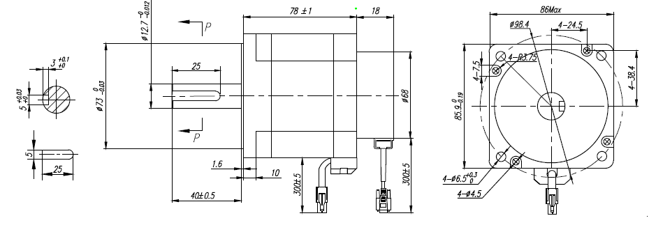 | Model: | HSM23442H | | Frame Size: | NEMA 34 | | Phase: | 2 | | Step Angle: | 1.8° | | Holding Torque: | 4.2 Nm (595 Oz-in) | | Number of Leads: | 4 | | Encoder Resolution: | 1,000 Line | | Shaft Size: | 0.500 inch (12.700 mm) | | Targeted Input Voltage: | 110/120 VAC | | Phase Current: | 2 A | | Inductance: | 20 mH | | Resistance: | 2.5 Ohm | | Length: | 3.78 inch (96 mm) | | Weight: | 5.26 lbs (2.39 kg) |